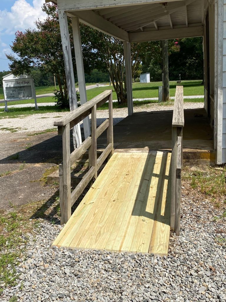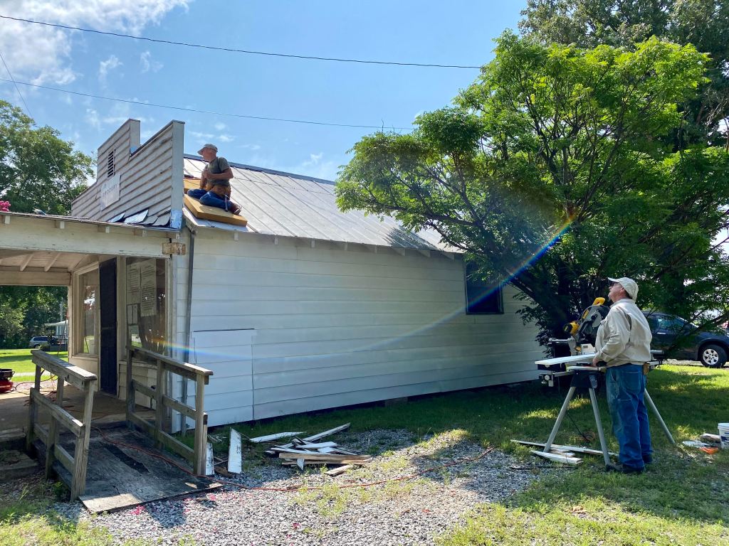 Bracey History Project members and volunteers provided some needed upkeep on the R. G. Kidd General Store building located in Bracey, VA. The store was built in the 1940s and operated as a general store until the owner’s passing in 2002. The building is now used as a community food pantry. Work accomplished this summer by the BHP team included repair of the handicapped accessibility ramp, installing new wood on the back of the parapet, painting the front screen door, and replacing one of the porch posts.